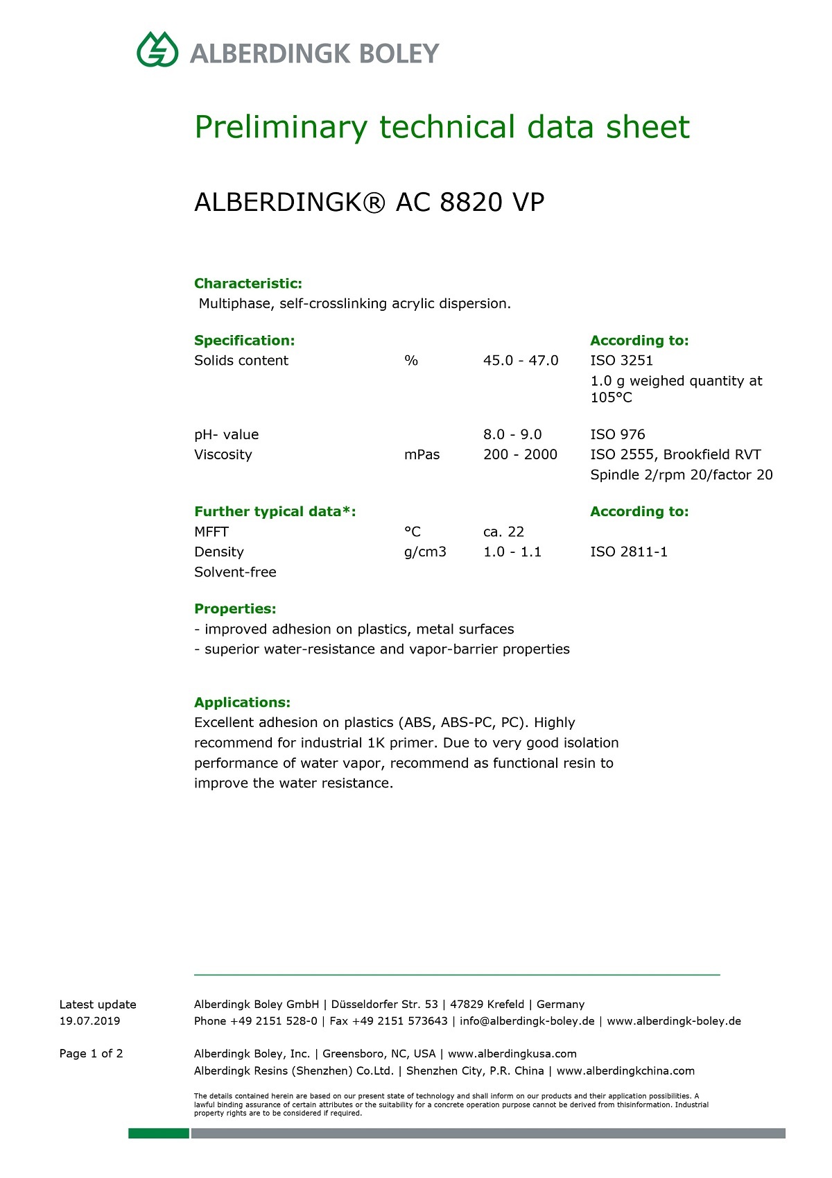 建(jian)議作(zuo)爲水(shui)性單(dan)組分(fen)塑膠(jiao)底漆(qi)用樹(shu)脂,該(gai)産品(pin)有💌極(ji)佳🧜🏼♂️的(de)水汽(qi)阻隔(ge)性能(neng),因此(ci)也可(ke)以把(ba)該産(chan)品作(zuo)爲輔(fu)助功(gong)能😜性(xing)樹脂(zhi)提升(sheng)塗💘層(ceng)的耐(nai)水性(xing)。