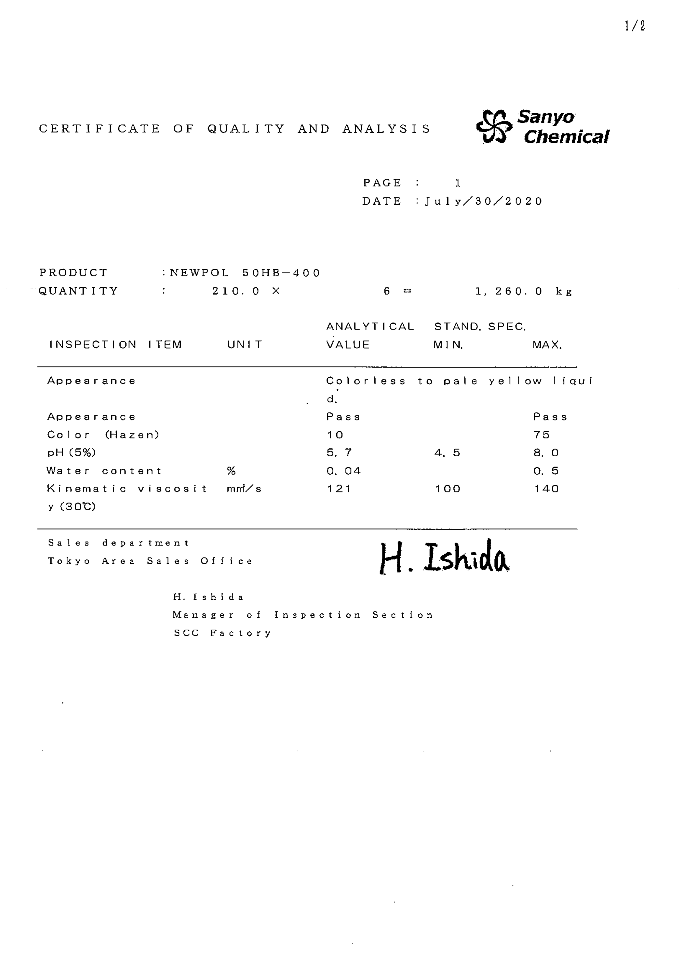 Newpol 50HB-400 烷(wan)基封(feng)端的(de)EO/PO嵌段(duan)共聚(ju)醚
